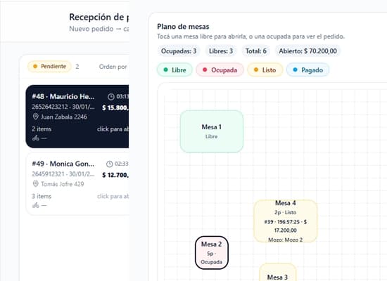 Tomá pedidos, imprimí por cocina y manejá la cuenta sin ir y volver al mostrador.